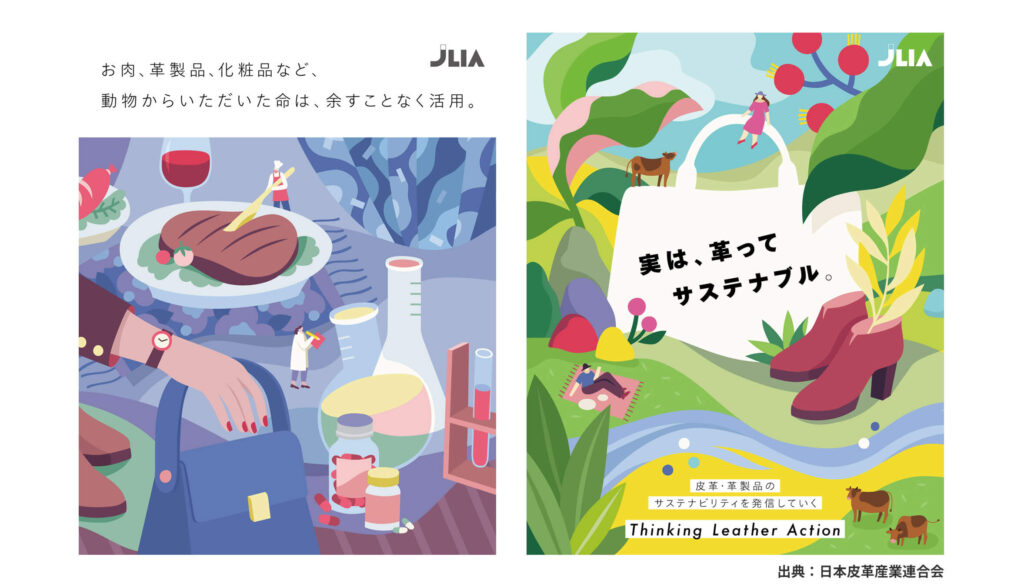 革製品は、食肉用などの動物からお肉をいただくときに出る皮を活用してつくられています。